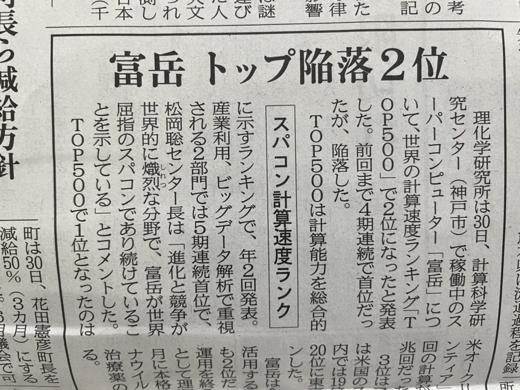 スパコン「富岳」が2位に